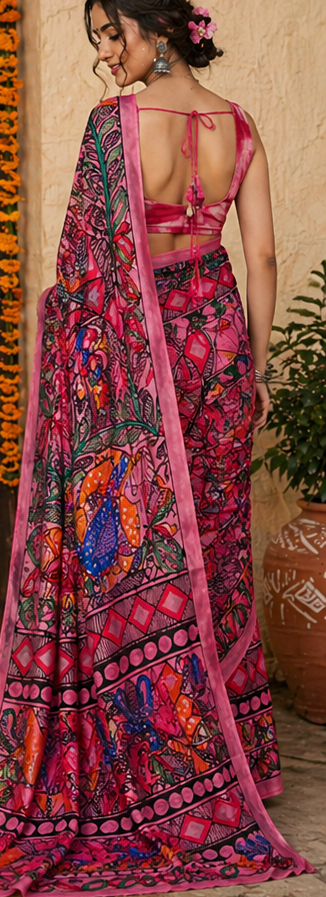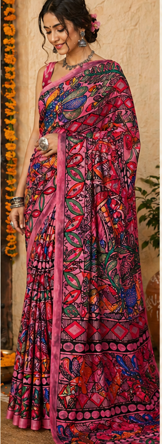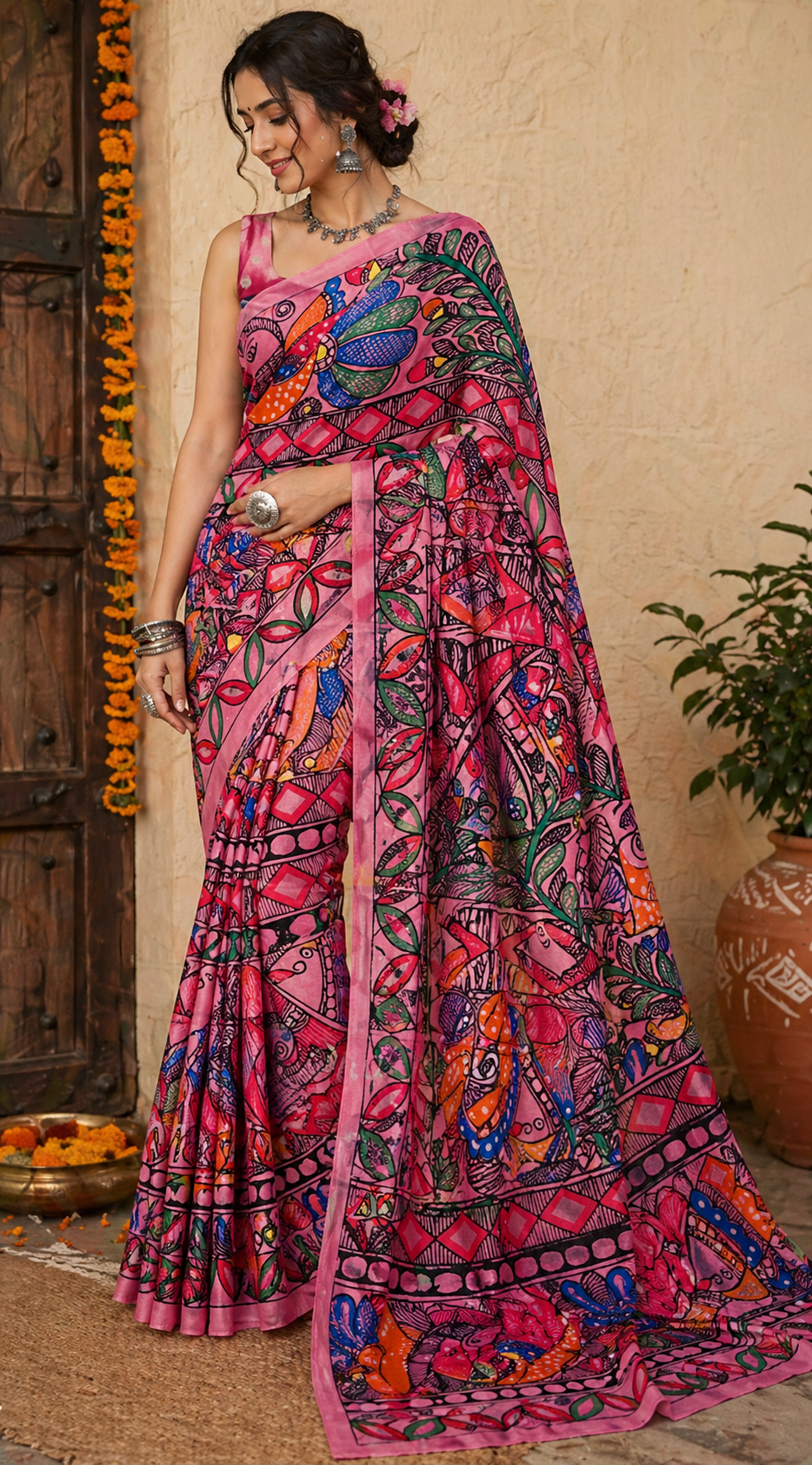 Hand Painted Madhubani Art Banarasi Silk Saree for Women